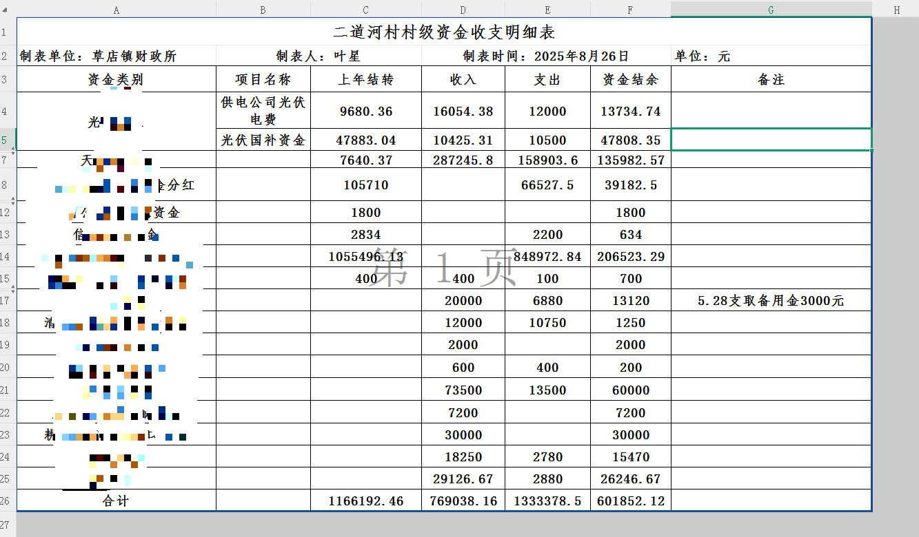 二道河村8月份村级资金收支明细