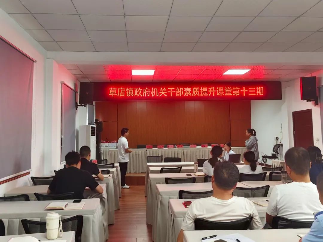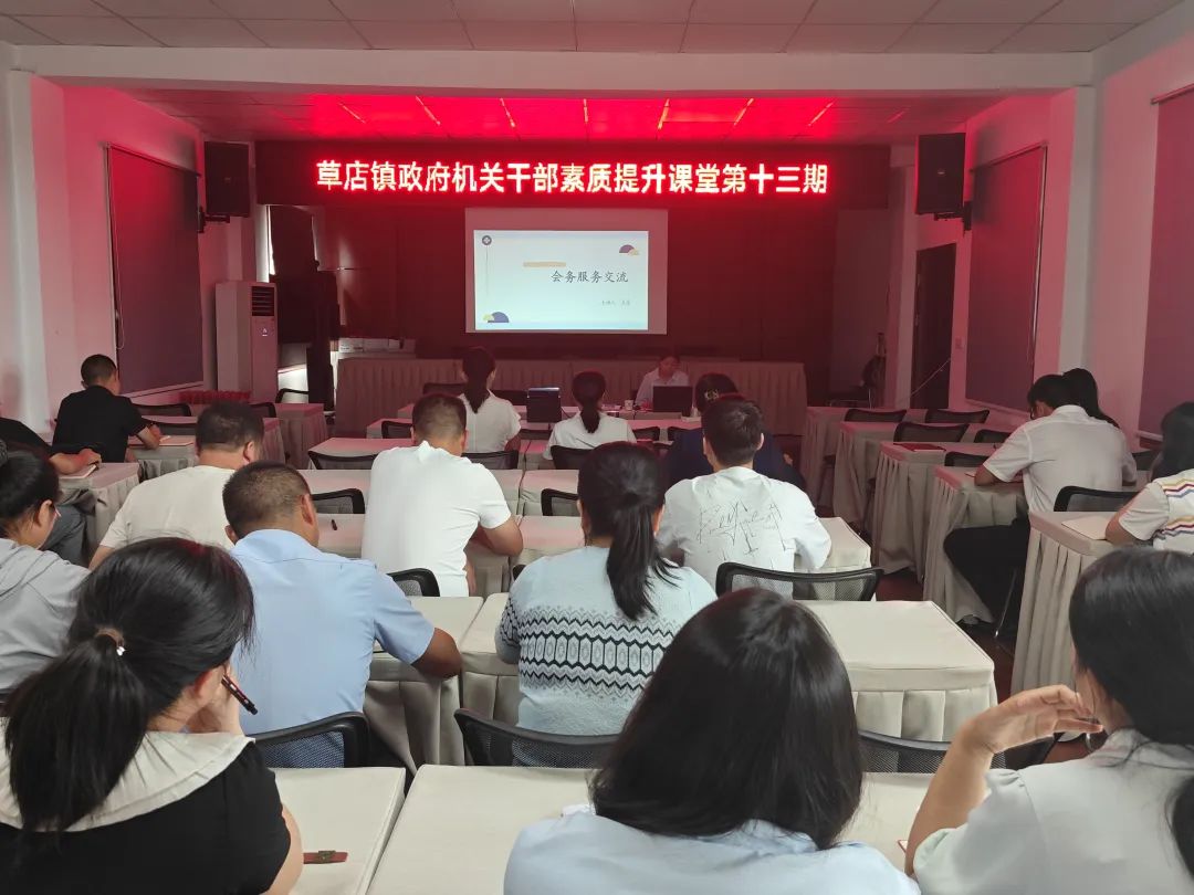 草店镇党委、政府第十三期"干部素质提升课堂"准时开课,为全面提升机关会务服务规范化、精细化水平,推动精文减会要求落地见效,本期课堂采用“岗位练兵+交流研讨+实操实训”模式展开会务服务交流,强化学用结合、以学促干,激发了年轻干部的干事动力和热情。