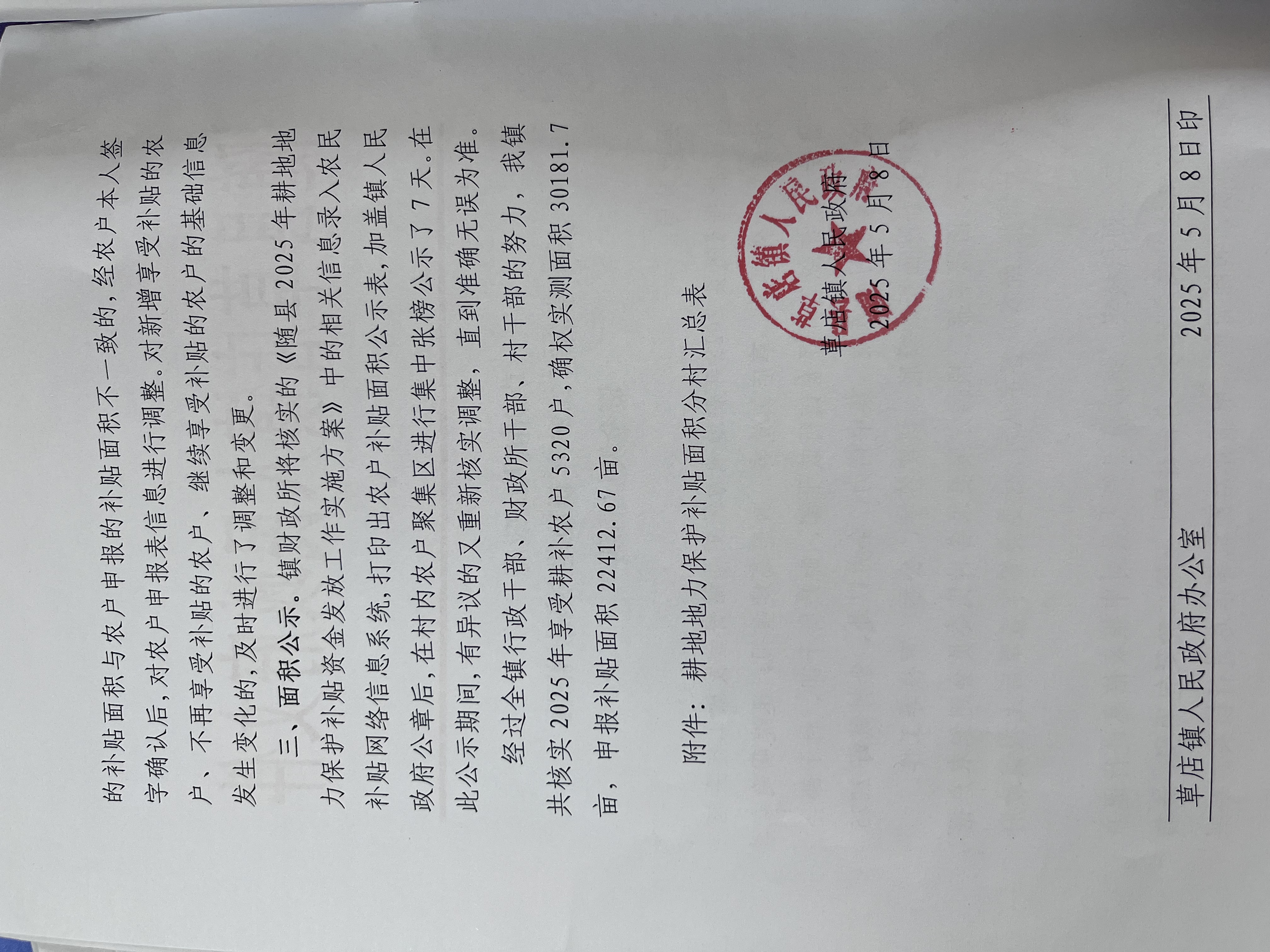 草店镇关于2025年耕地力保护补贴的补贴范围及补贴对象说明