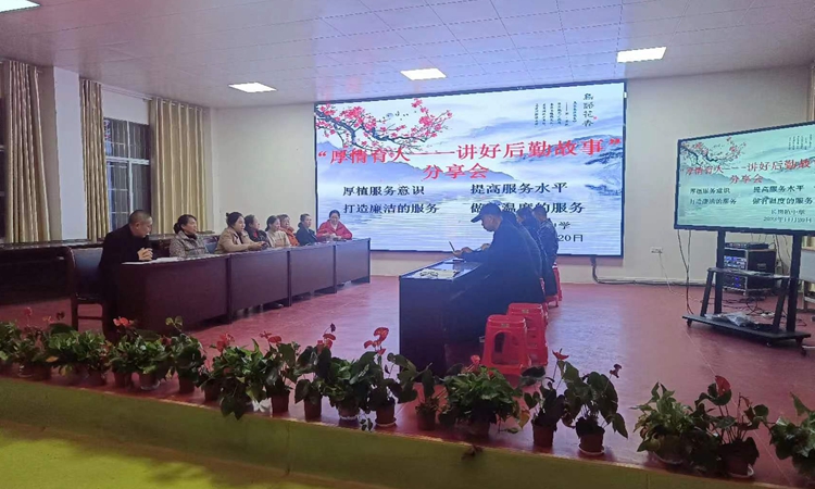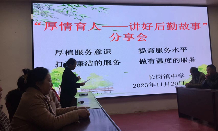 随州大洪山网讯(李政先)11月20日,为在学校内搭建相互交流、言传身教、共同进步的平台,弘扬奋发向上、勇于超越、积极进取的精神,向全校师生展现爱岗敬业、真诚服务、无私奉献的后勤风采,以市教育局后勤服务中心关于举办“新华杯•厚情育人——讲好学校后勤故事”征文活动为契机,长岗中学总务处举办了一场以“厚情育人——讲好后勤故事”为主题的故事分享会。