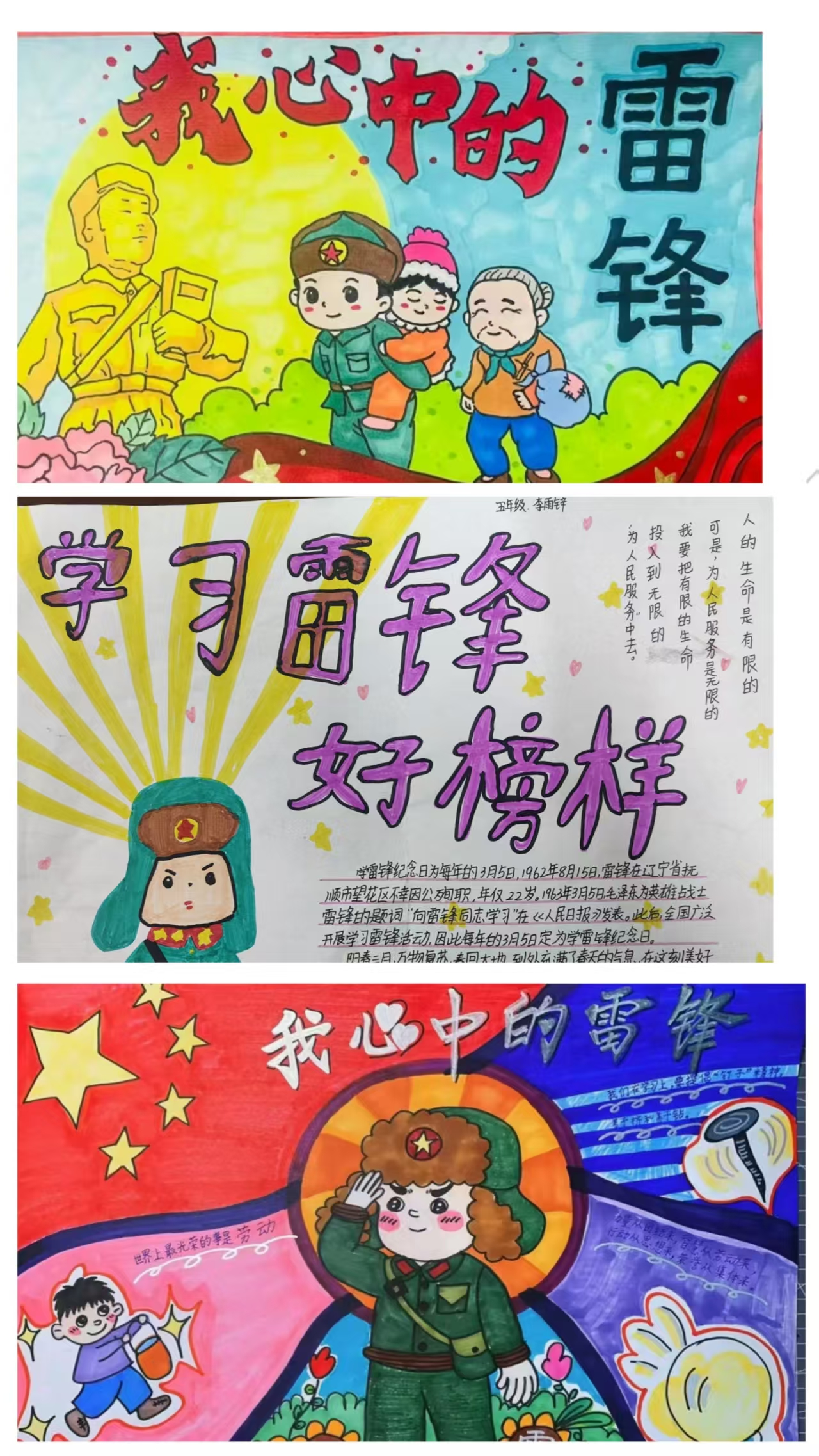 此外,学校还开展了“雷锋精神在我心中”主题征文和手抄报、绘画比赛。同学们用文字和画笔表达了对雷锋精神的理解和感悟,展现了新时代少年儿童的精神风貌。同学们纷纷表示要从身边做起,从小事做起,做一个有爱心、有责任感的追“锋”少年。