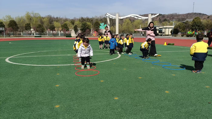 园区的绿色大操场,摇身一变成为了充满欢乐与探索氛围的学习乐园。教师们充分考虑班级幼儿的年龄特点与兴趣爱好,深入钻研游戏教法,将教育目标巧妙地融入每一个游戏环节。教学中时刻关注幼儿表现,敏锐捕捉每一个教育契机,灵活调整教学策略,适时给予引导,一个鼓励的眼神、一句启发的话语,都在激发着孩子们的创造力与空间思维。