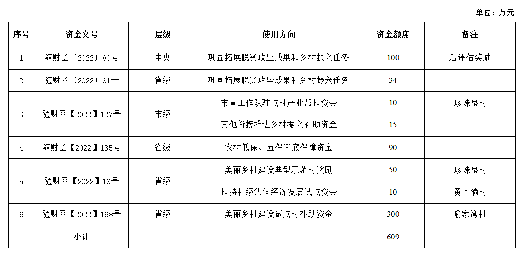大洪山风景名胜区上级下达财政衔接推进乡村振兴补助资金公告公示