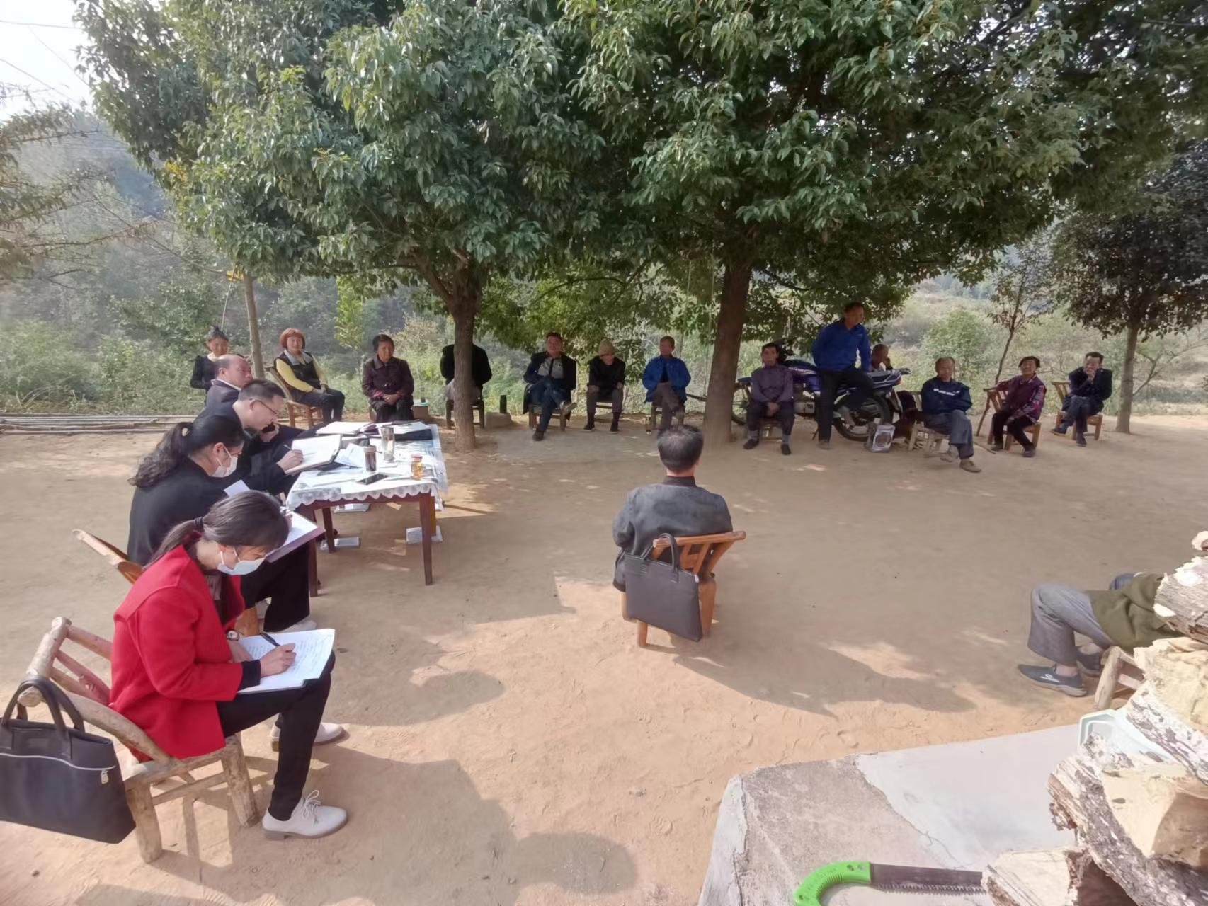 村湾会现场,驻村工作队长、长岗镇包村干部、村委会全体成员和20余名父老乡亲围坐在一起。村支部书记徐艳明详细讲解了何家大湾片区农田水利补短板建设内容、未来发展规划,对森林防灭火、秋冬播、疫情防控、乡村振兴等有关工作做了宣讲和安排。