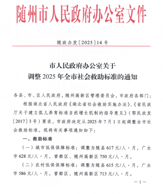 市人民政府办公室关于调整2025年全市社会救助标准的通知