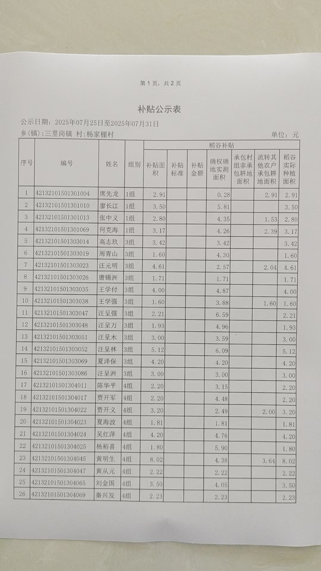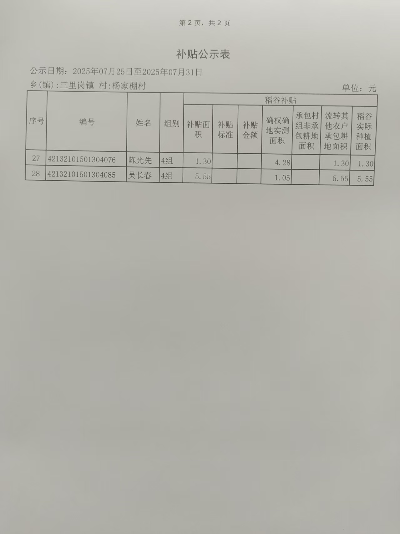 2025年稻谷补贴公示