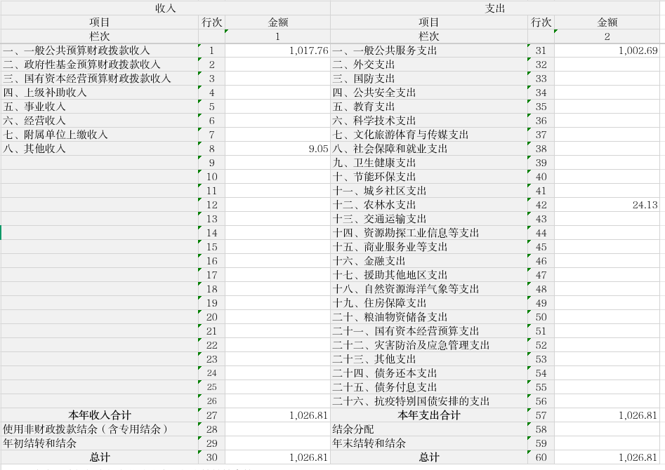 2024年度收、支总计均为1026.81万元。与2023年度相比,收、支总计各减少918.19万元,下降47.2%,主要原因是人员经费、项目支出减少。