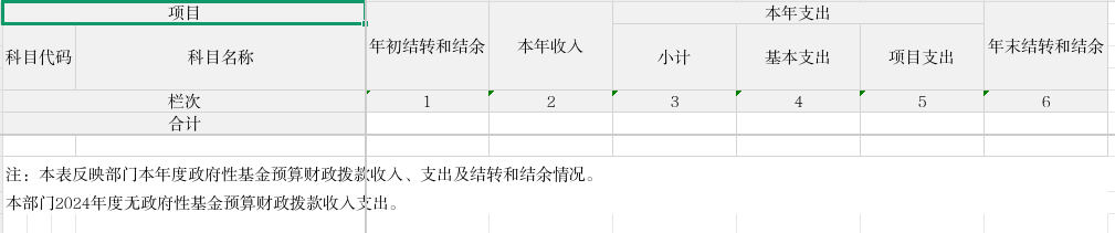 2024年度政府性基金预算财政拨款年初结转和结余万元,本年收入0万元,本年支出0万元,年末结转和结余0万元。