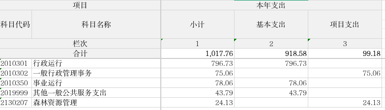 2.农林水支出(类)24.13万元,占2.37%。主要是用于森林资源管理。