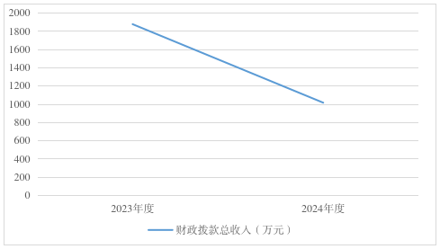 2024年度收入合计1026.81万元,与2023年度相比,收入合计减少918.19万元,下降47.2%。其中:财政拨款收入1017.76万元,占本年收入99.12%;上级补助收入0万元,占本年收入0%;事业收入0万元,占本年收入0%;经营收入0万元,占本年收入0%;附属单位上缴收入0万元,占本年收入0%;其他收入9.05万元,占本年收入0.88%。