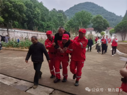 古庙村演练现场模拟突发暴雨引发山洪和地质灾害,部分群众受困。随着预警信号响起,镇防汛指挥部立即启动应急预案,抢险救援组、医疗救护组、转移安置组迅速集结,在夜色中展开行动。救援人员利用扩音器引导群众按预定路线撤离,搀扶行动不便的老人,并模拟对“受伤”村民进行紧急包扎和转运。20分钟后,所有受威胁群众被安全转移至临时安置点,后勤保障组同步发放物资,确保基本生活需求。