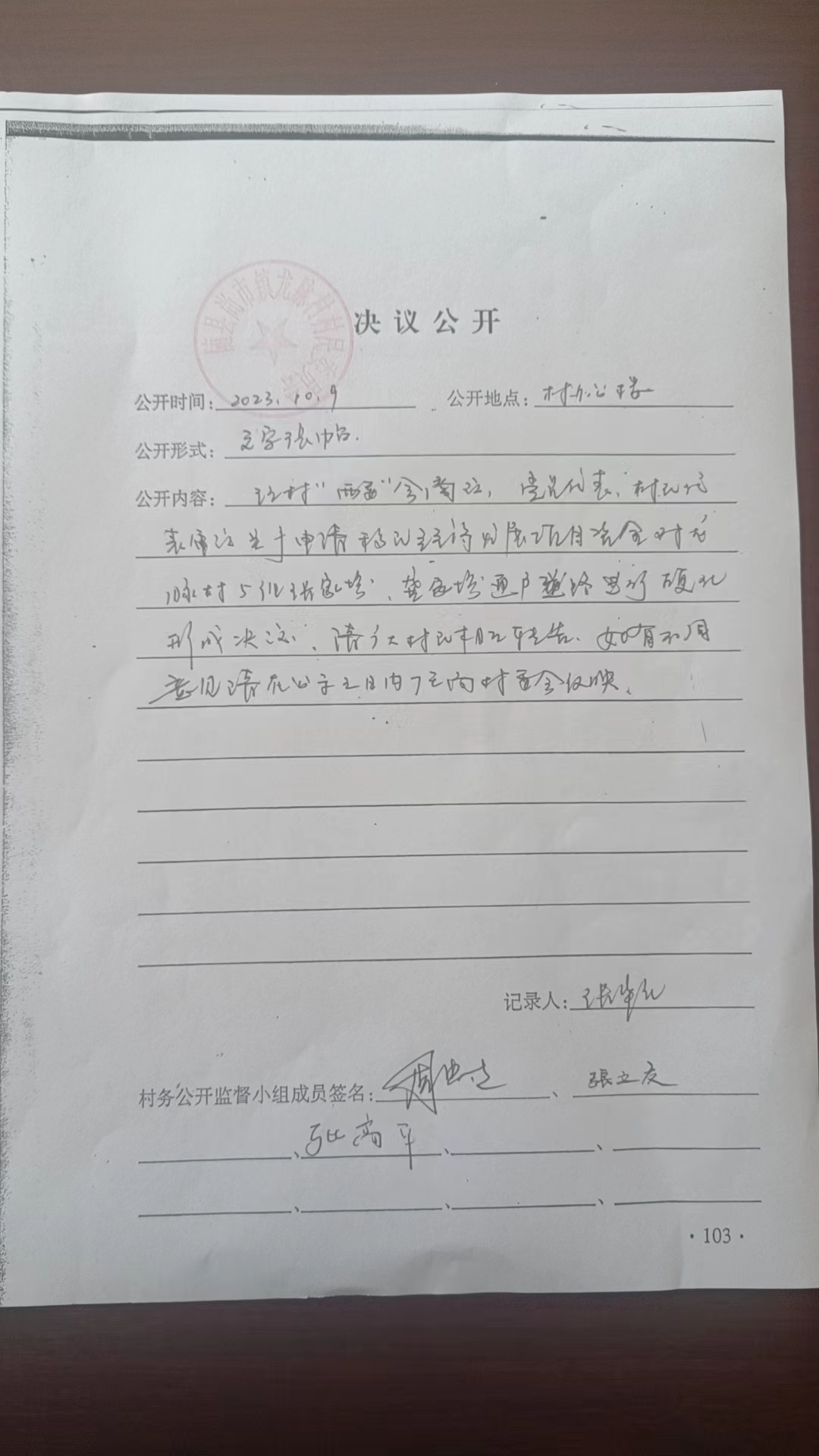 龙脉村五组通户道路硬化会议记录