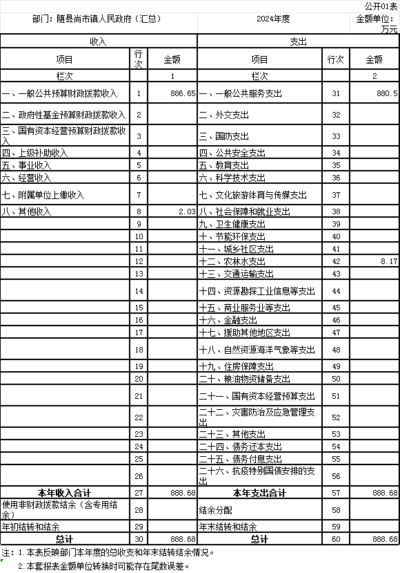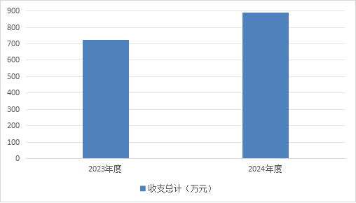 2024年度收、支总计均为 888.68 万元。与2023年度相比,收、支总计各增加 165.79 万元,增长43 %,主要原因是新增两下级单位。