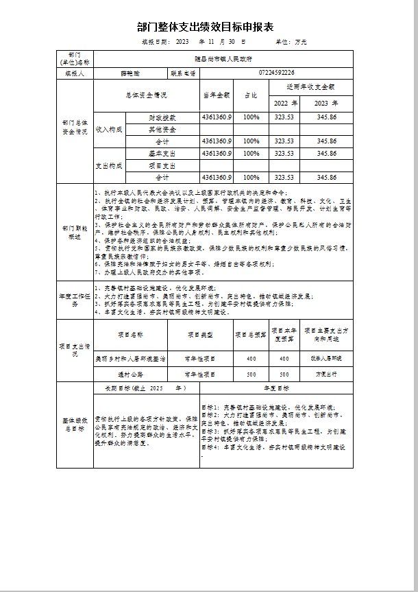 长期目标:贯彻执行上级的各项方针政策,保障公民享有宪法规定的政治、经济和文化权利。努力提高群众的生活水平,提升群众的满意度。