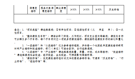 满意度指标:群众满意度≥95%,以上指标设立依据是计划标准。