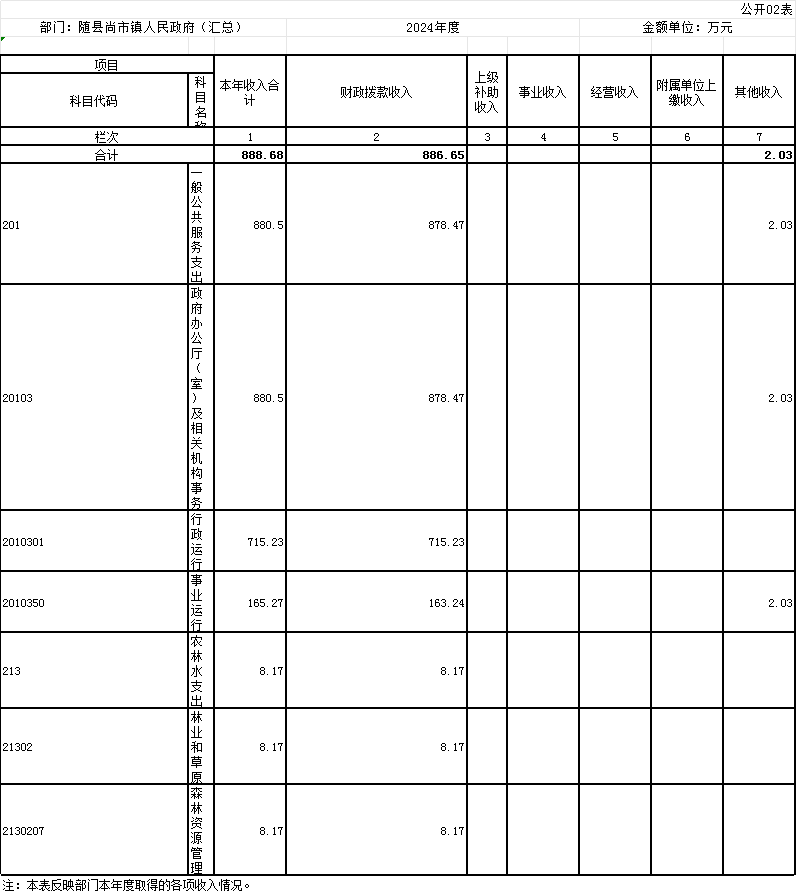 2024年度收入合计 888.68万元,与2023年度相比,收入合计增加 165.79 万元,增长43 %。其中:财政拨款收入888.68万元,占本年收入100%;上级补助收入0万元,占本年收入0%;事业收入0 万元,占本年收入 0%;经营收入 0万元,占本年收入0 %;附属单位上缴收入 0万元,占本年收入 0%;其他收入0 万元,占本年收入0 %。