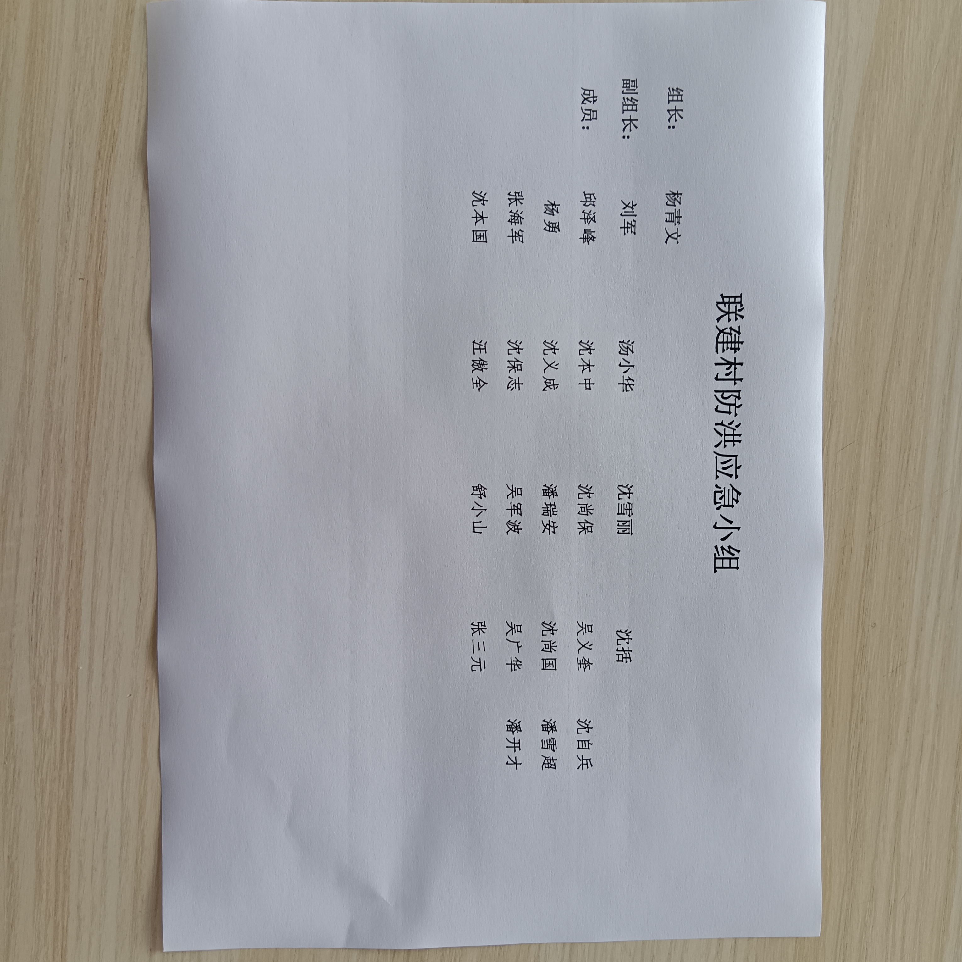 联建村防洪应急小组
