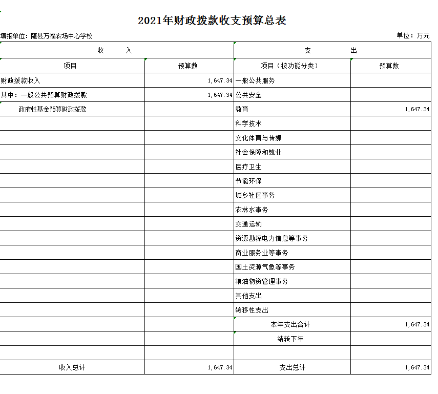 第二部分 随县万福农场中心学校2021年部门预算情况说明