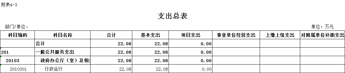 2、本年度支出预算合计22.08万元。其中:一般公共服务支出22.08万元。